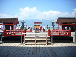 厳島神社は本殿も鳥居も海の中に建っているのですが、満潮時は床下ギリギリまで水がくるんですね。