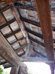 | 聖衆来迎寺。 寺の門は坂本城の門を移築したものです。400年前のままです。柱の組み方などをぜひご覧になってください。野ざらしにされてるので、いつかは朽ちると思います。 |